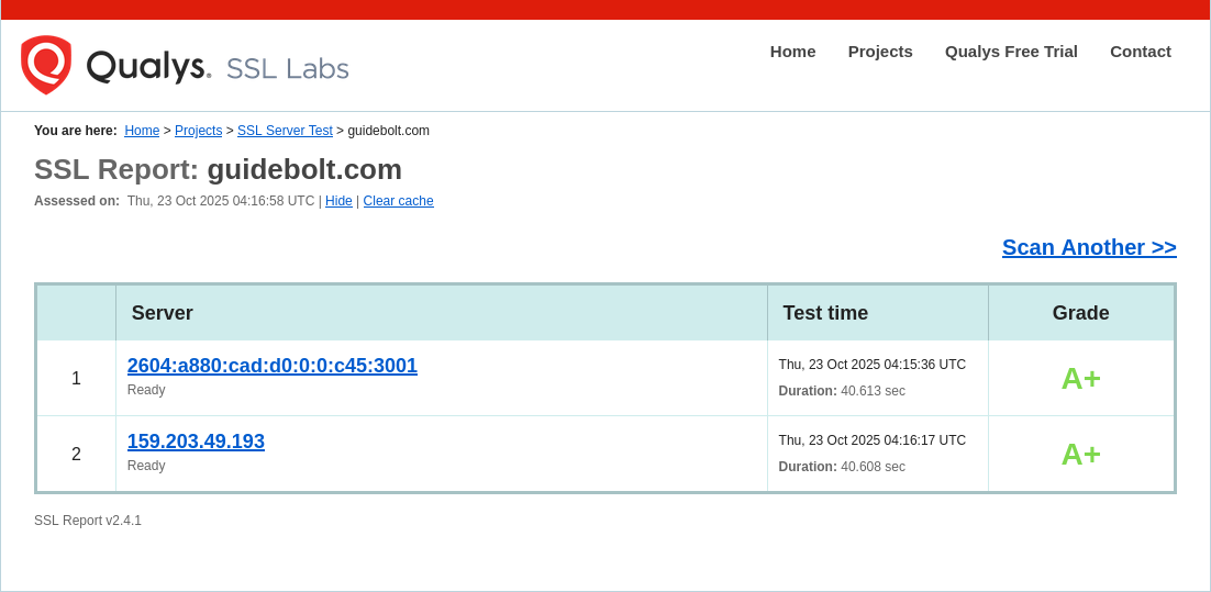 Exceeding industry standards for protecting data-in-transit and data-at-rest. A+ Qualys SSL Results.